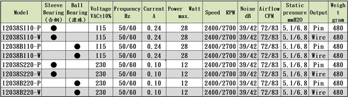 Bearing軸承:Sleeve or Ball types 含油銅質或滾珠