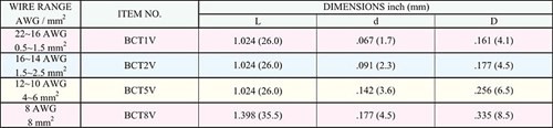 產品說明:1.最高電流:600 伏特2.最高溫度: 75°C3.端子材質:紅銅管4.電鍍:鍍錫5.絕緣材質: VINYL(PVC)產品規格: