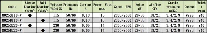 80mm*80mm*25mm AC Fan 交流風扇