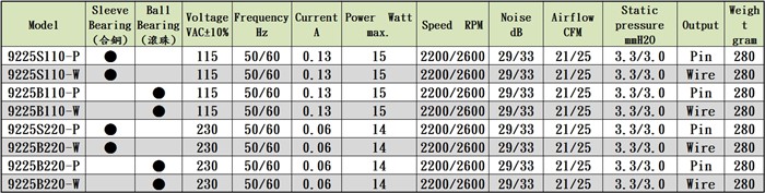 | Bearing 軸承: Sleeve or Ball types 含油銅質或滾珠 |