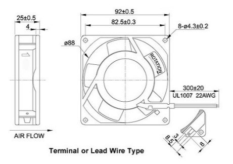 | Lead wire導線:UL1007 22AWG,Length:長度30cm |