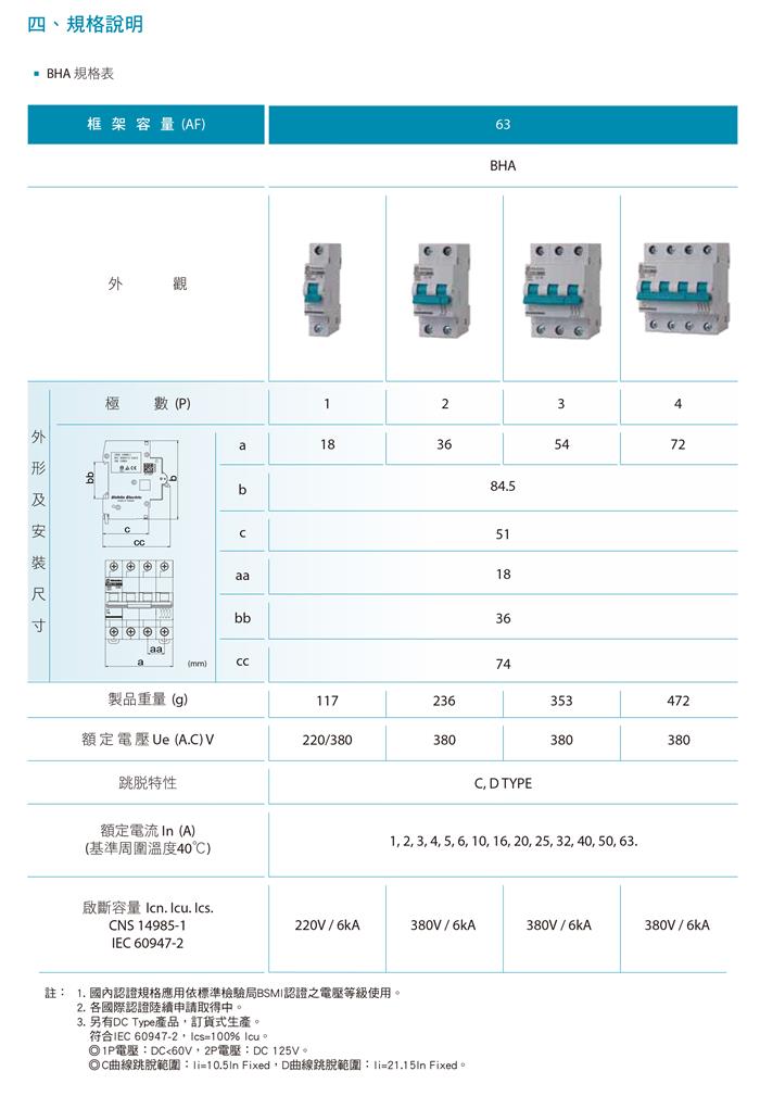 BHA系列設計集過載保護、短路保護、自由跳脫機構於一體,能確保產品啟斷的可靠度。